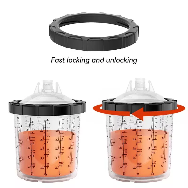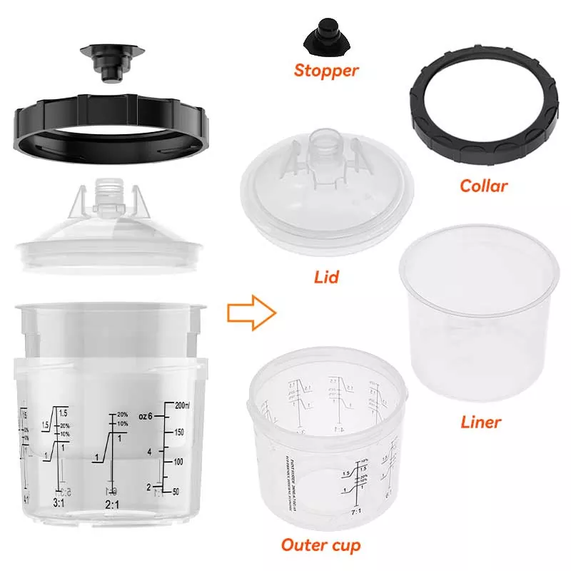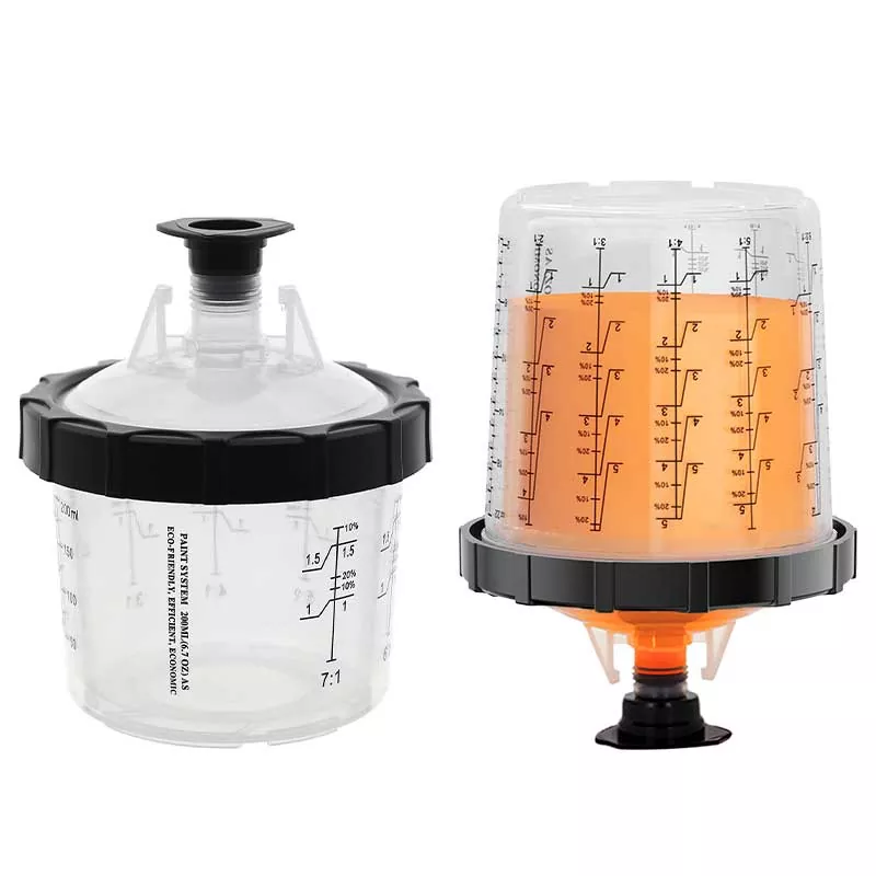 Tämä 200 ml:n kertakäyttöinen maalikuppijärjestelmä 1.0 korvaa periaatteessa perinteisen painovoimansyöttökupin, koska se ei ainoastaan säästä enemmän maalia, vaan myös parantaa maalauksen tehokkuutta. Tarkemmin sanottuna vuorauksen automaattisen spiraalin hieno muotoilu maalattaessa tekee maalista täysin hyödynnettävissä; Samaan aikaan nopea lukitus ja vuorauksen vaihtorakenne välttää kupin pesun, mikä mahdollistaa maalaustyön suorittamisen tehokkaasti ja toistuvasti. Meillä on adaptereita lähes kaikkiin markkinoilla oleviin ruiskutuspistooleihin, jotka vastaavat eri ruiskutusharrastajien kokemustarpeita. Adapteri on valmistettu ruostumattomasta teräksestä, joka kestää maalikorroosiota ja on erittäin kestävä. Tiivis vuorauksen ja kannen yhdistelmä varmistaa, että kuppijärjestelmä ei vuoda maalia maalattaessa, ja tukee käyttämättömän maalin pitkäaikaista varastointia tuhlauksen välttämiseksi.