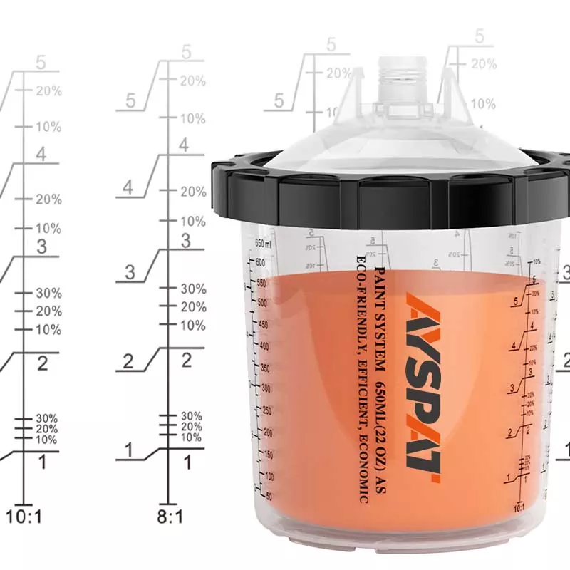 AYSPAT 200ML kertakäyttöinen maalikuppijärjestelmä 1.0 suunniteltiin maalaajien kasvavan kysynnän perusteella tehokkaampaan maalaukseen. Se voi säästää kustannuksia ja toteuttaa monikulmamaalauksen. Suosittelemme sitä käytettäväksi maalaustilanteissa, kuten auto-, teollisuus-, koti- ja muilla aloilla. Etsi Kiinassa valmistettua kertakäyttöistä ruiskutuspistoolin kuppia, joka tuo sinulle unohtumattoman maalauskokemuksen. Olemme kertakäyttöisen maalikuppijärjestelmän lähdevalmistaja, voit ottaa meihin yhteyttä virallisen verkkosivuston tai sosiaalisen median kautta. Voimme myös tarjota ilmaisen suunnittelun ja näytetoimituksen.