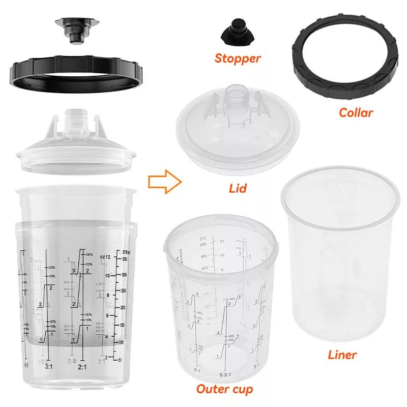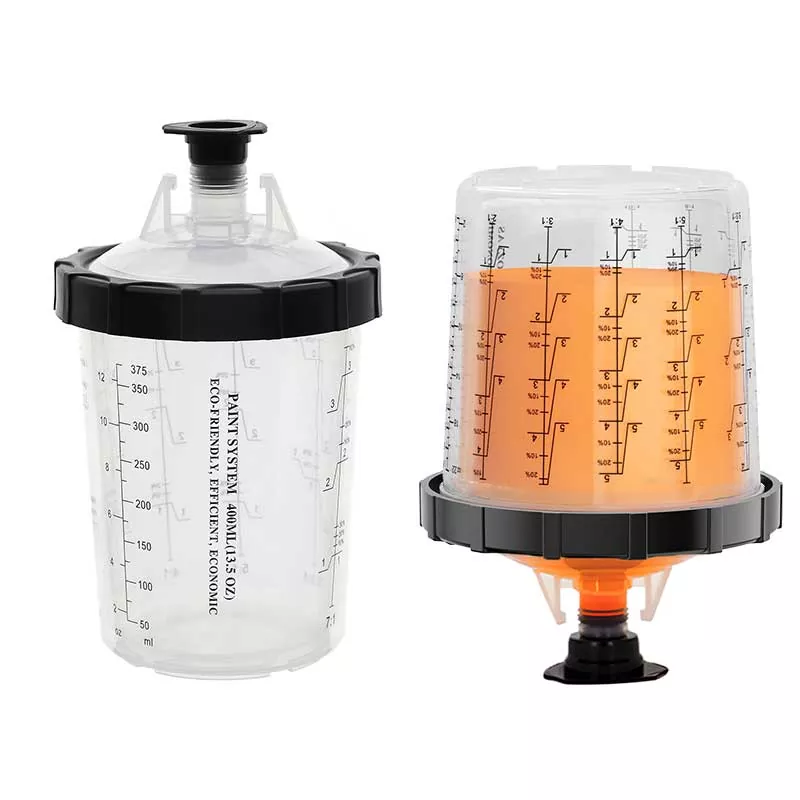 Tämä 400 ml:n kertakäyttöinen maalikuppijärjestelmä 1.0 korvaa periaatteessa perinteisen painovoimansyöttökupin, koska se ei ainoastaan säästä enemmän maalia, vaan myös parantaa maalauksen tehokkuutta. Tarkemmin sanottuna vuorauksen automaattisen spiraalin hieno muotoilu maalattaessa tekee maalista täysin hyödynnettävissä; Samaan aikaan nopea lukitus ja vuorauksen vaihtorakenne välttää kupin pesun, mikä mahdollistaa maalaustyön suorittamisen tehokkaasti ja toistuvasti. Meillä on adaptereita lähes kaikkiin markkinoilla oleviin ruiskutuspistooleihin, jotka vastaavat eri ruiskutusharrastajien kokemustarpeita. Adapteri on valmistettu ruostumattomasta teräksestä, joka kestää maalikorroosiota ja on erittäin kestävä. Tiivis vuorauksen ja kannen yhdistelmä varmistaa, että kuppijärjestelmä ei vuoda maalia maalattaessa, ja tukee käyttämättömän maalin pitkäaikaista varastointia tuhlauksen välttämiseksi.