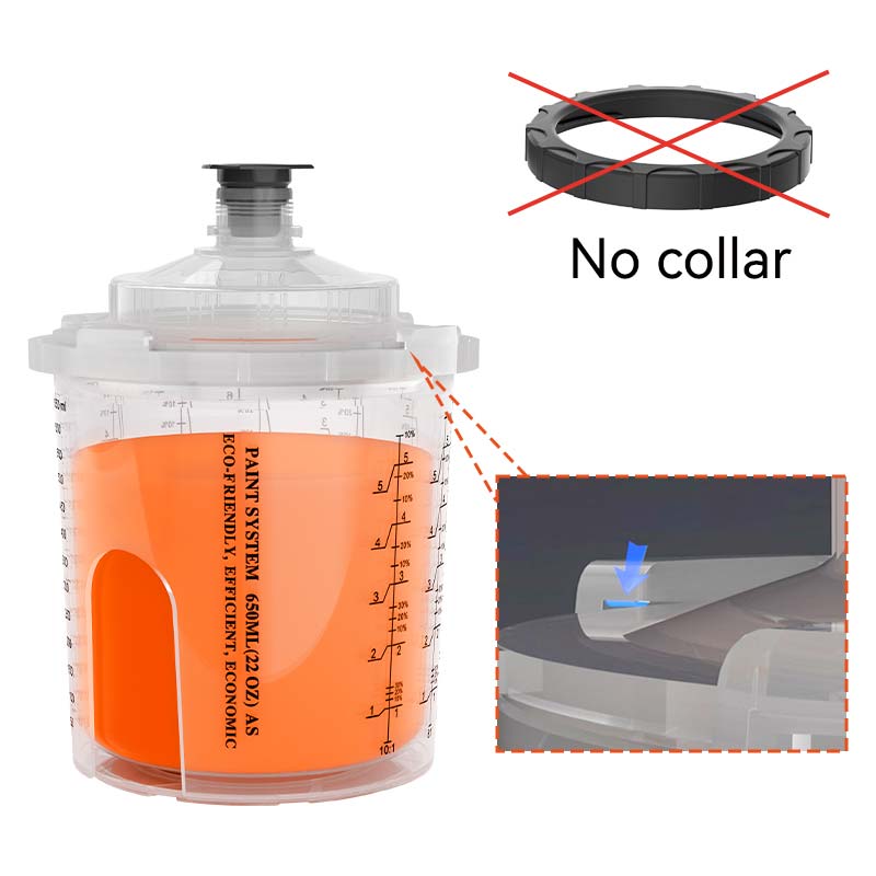 Kaulus ,, joka muodostaa tiukan yhteyden kupin ja kannen välillä, on jo pitkään ollut tärkeä komponentti kertakäyttöisissä suihkekuppijärjestelmissä. Kiireisen maalausistunnon aikana maalarit menettävät tai vahingoittavat kaulusta usein, estäen kertakäyttöisen suihkekupin toiminnan kunnolla, mikä luo merkittäviä haasteita.